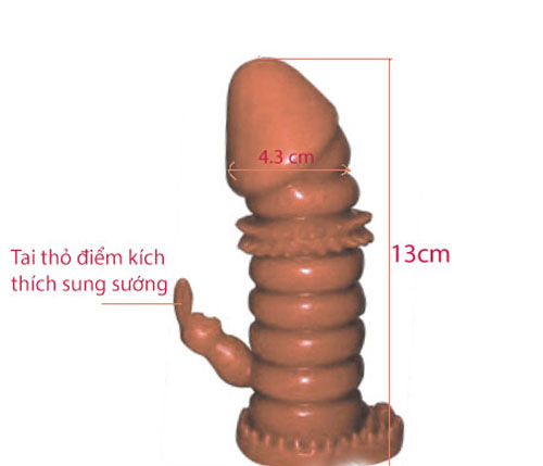 Đầu được làm bằng chất liệu silicone mềm và da màu nâu, trông giống dương vật của đàn ông. Đặc biệt là vòng tròn co thắt xung quanh và vòng gai ngay dưới đầu dương vật khiến các bạn gái vô cùng thích thú khi đồ chơi được đưa sâu vào âm đạo.